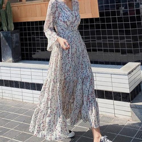 [오너클랜]인기상품 여성 플라워패턴 꽃무늬 하늘하늘 브이넥 롱 원피스 [WD682CE_250917]