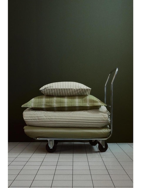 [에이치엔엠] 코튼 싱글 이불커버 세트 세이지 그린/화이트 스트라이프 1244254017