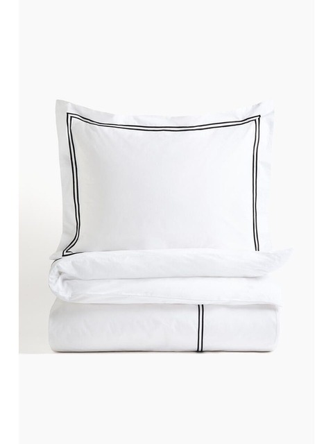 [에이치엔엠] 코튼 퍼케일 싱글 이불커버 & 베개커버 화이트/블랙 0821677007