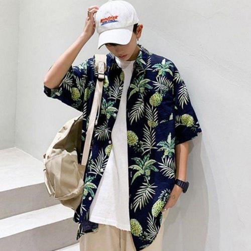키밍 캐주얼 남자 하와이안 셔츠 플라워 커플 남방