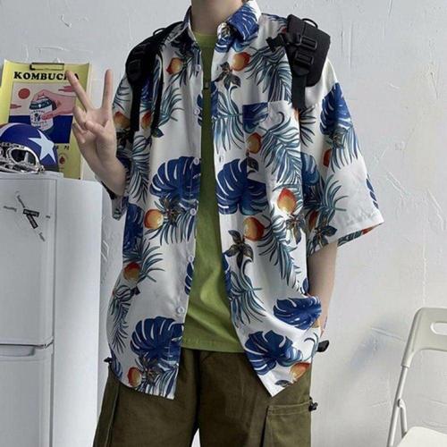 하와이 열대 스타일 앵무새 프린트 반팔 알로하 셔츠, 쿠바 스타일, 플러스 사이즈 캐주얼 남성 셔츠, 여름 신상