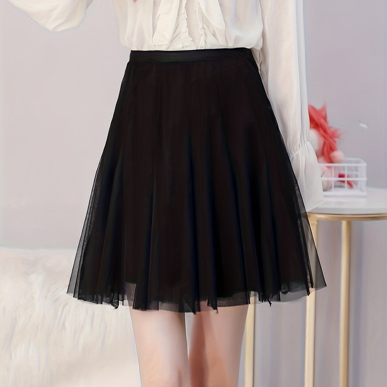 TEMU 여성용 루즈핏 A라인 스타일의 새로운 하이웨이스트 메쉬 스커트