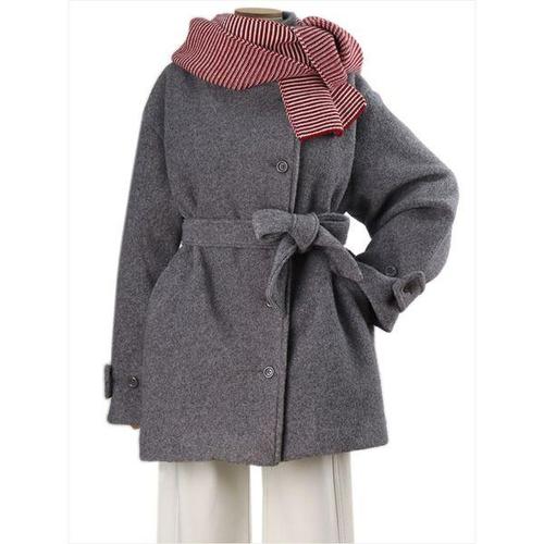 [르뚜앙]멍추 겨울 하이넥 울코트 더블버튼 A라인 벨트 하프코트 반코트 아이보리 데일리 오버핏 키작녀 ..