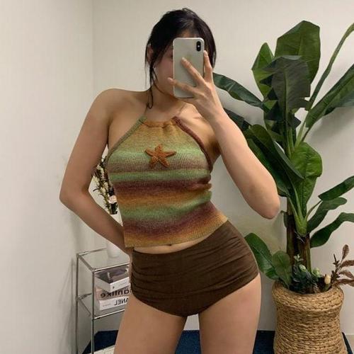 투피스 홀터 레트로그라비키니 니트수영복 하이웨스트 WFIJY9U