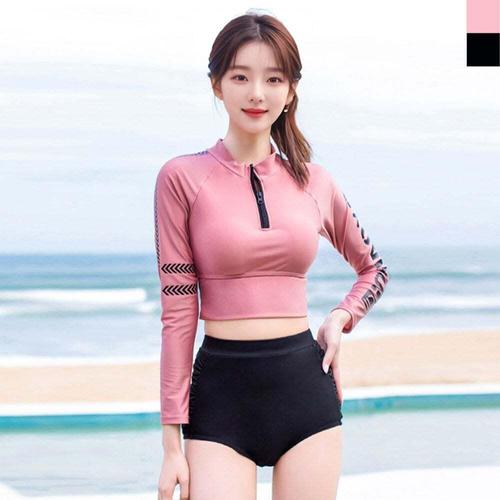 여자 긴팔 크롭 래쉬가드 하이웨스트 세트 수영복 WFFA675