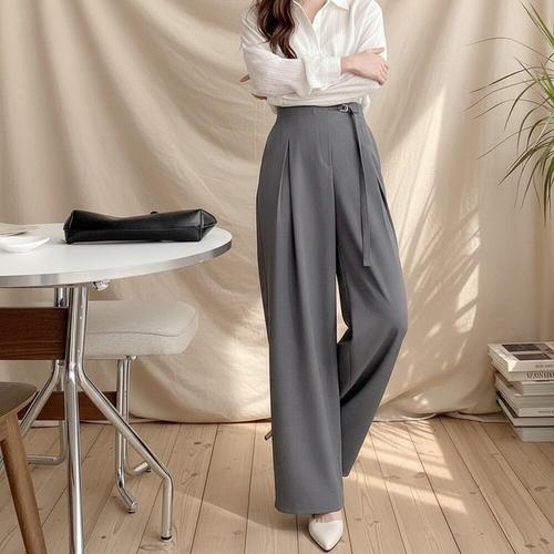 [옷자락]여성 와이드 슬랙스 하이웨이스트 버클 정장 출근용