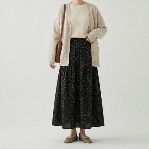 [핑크엘리제]밴딩 플로럴 하이웨이스트 포다엘롱스커트