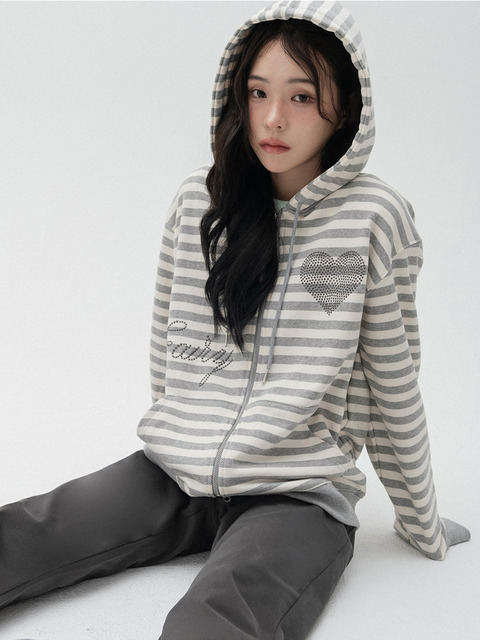 [하이스쿨디스코] 페어리 핫픽스 스트라이프 후드집업_메란지그레이