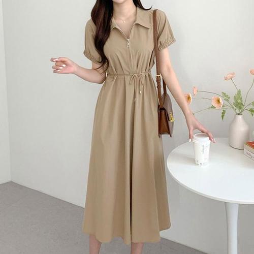 [오너클랜]하프 집업 카라넥 허리 슬림핏 스트링 반팔 원피스