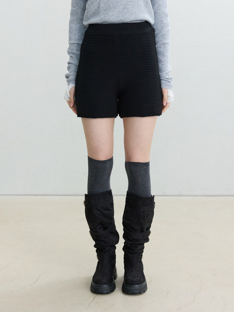 [시크릿라벨] 뒷밴딩기모핀턱레더숏팬츠