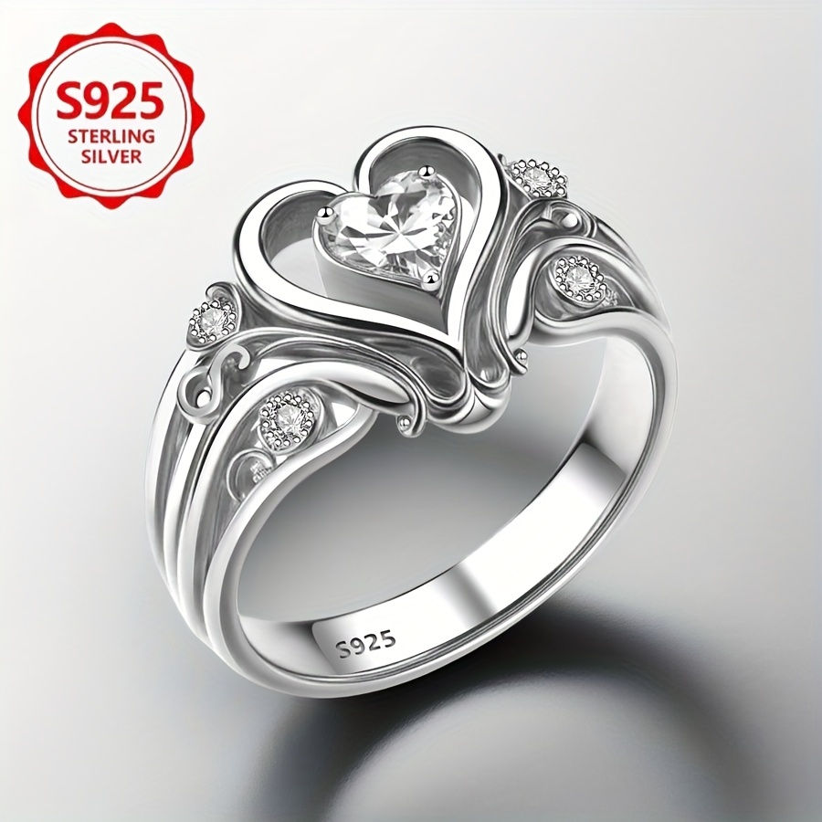 TEMU S925 실버 하트 모양 반지, 여성용 로맨틱 링 - 생일, 기념일, 크리스마스, 졸업식, 어버이날 완벽한 선물