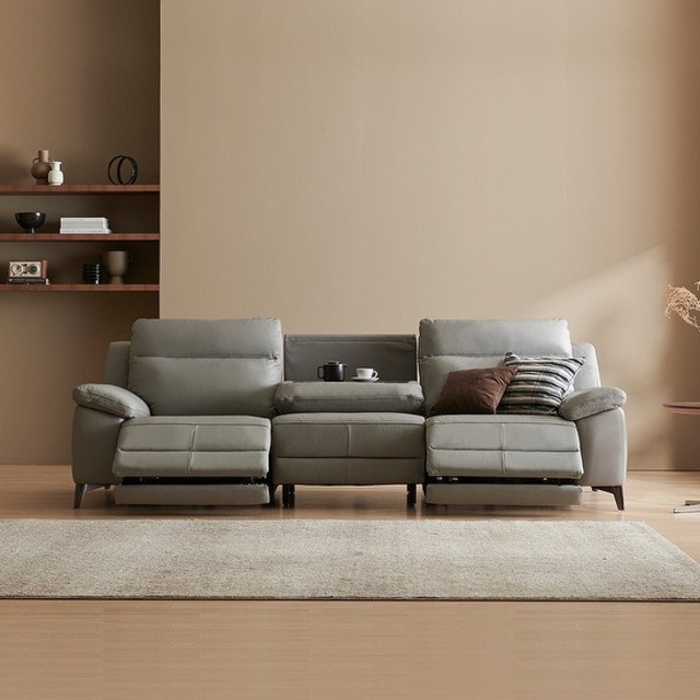 [오늘의집 단독] 한샘몰pick 리베 모션 슬라이드 리클라이너 가죽 소파 4인용