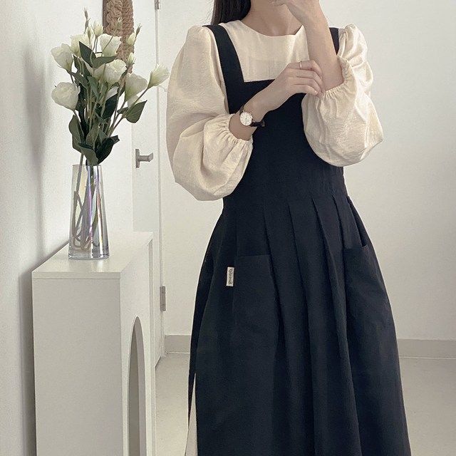 젊은이마켓 트임 원피스 코튼 앞치마, 다크그레이, 1개