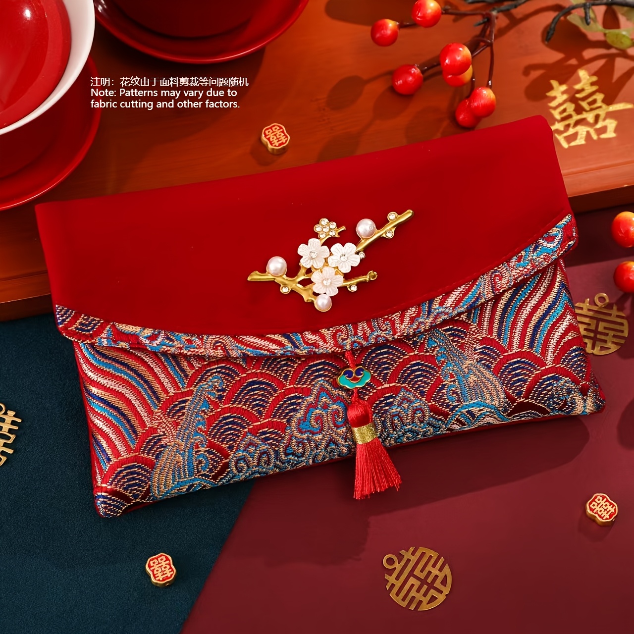 TEMU 2026년 새해 설날 빨간 봉투 | 자수 빨간 벨벳 가방 | 자체 밀봉 폴리에스터 돈 봉투 | 필수 새해 장식