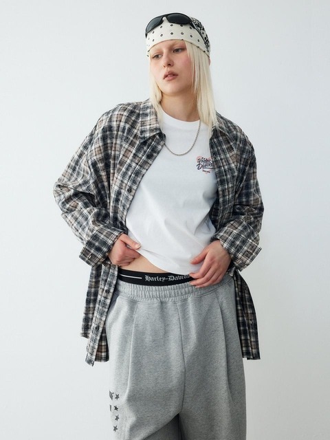 [할리데이비슨 컬렉션스] 플랫 트랙 체크 링클 긴팔 셔츠_블랙 HH16110002