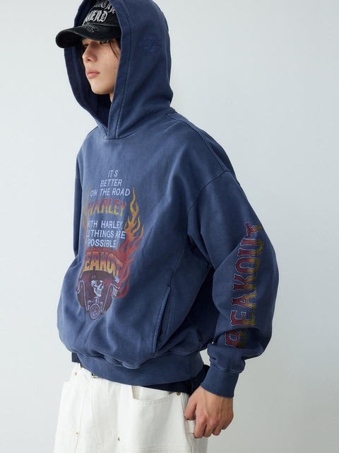[할리데이비슨 컬렉션스] [빈티지] 스컬 플레임 피그먼트 다잉 오버핏 후디_네이비 HH16109004