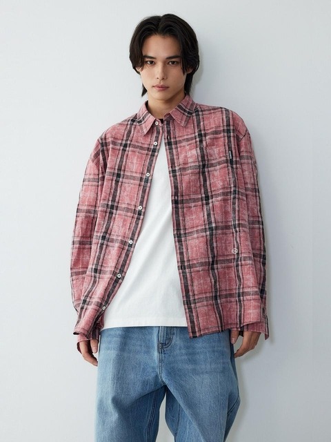 [할리데이비슨 컬렉션스] 플랫 트랙 체크 링클 긴팔 셔츠_핑크 HH16110002