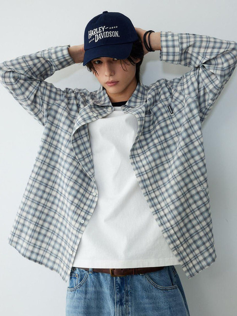 [할리데이비슨 컬렉션스] 플랫 트랙 체크 링클 긴팔 셔츠_라이트 블루 HH16110002