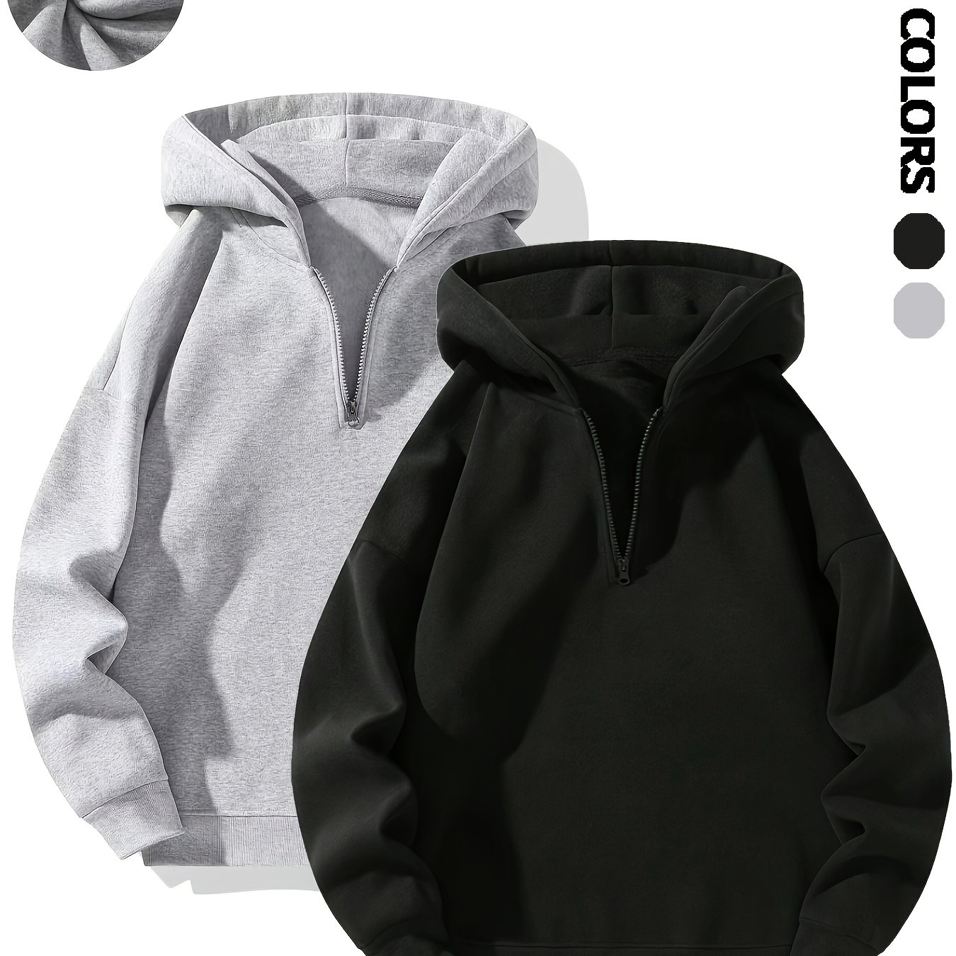 TEMU 2피스 남성 솔리드 컬러 하프 지퍼 후드티, 블랙 앤 그레이, 남성용 캐주얼 무지 긴팔 풀오버 스웨트셔츠, 가을 의상, 가을/겨울 웨어, 스트리트웨어, 남성 의류, 남성 캐주얼 복장, 멀티 시ーン 웨어