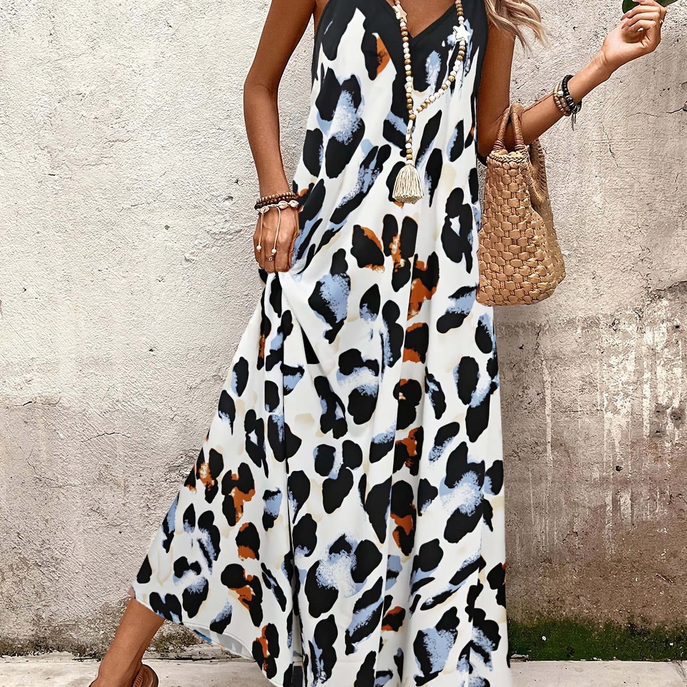 TEMU 여성 민소매 긴 프린트 캐주얼 바캉스 드레스