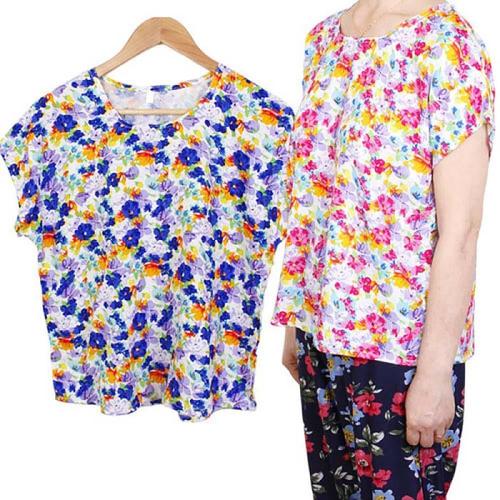 [옷자락]여자 할머니 여름 캡소매 꽃무늬 나염 반팔 티셔츠