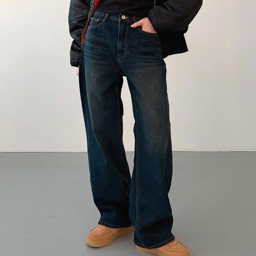 H스타일(JN)3059벌룬보이핏선기모다트데님팬츠 겨울 여성 핫기모 청바지 데님팬츠 와이드팬츠 통바지