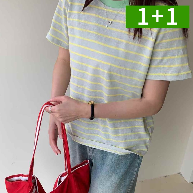 1+1 여성 티셔츠 라운드 면 반팔티