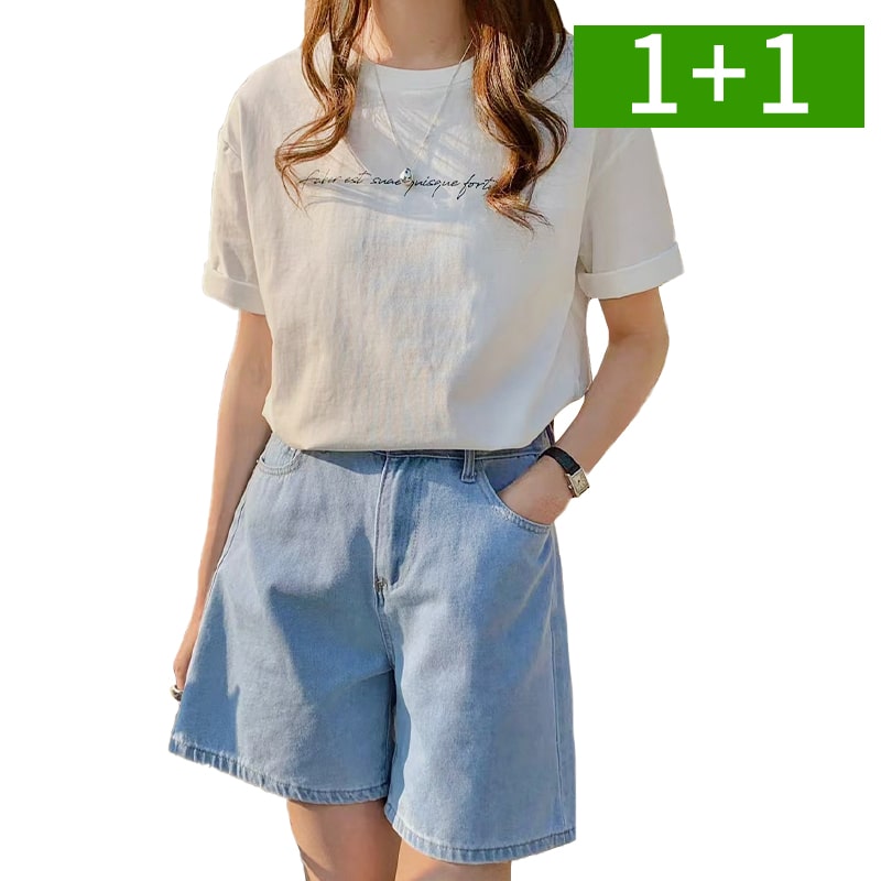 1+1 면티 여자 반팔티 라운드넥 레터링 여름 여성티셔츠