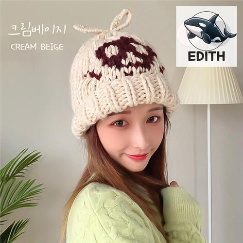브라운 울 햇모자 가을 겨울 여성 해골모자 WFLOSME