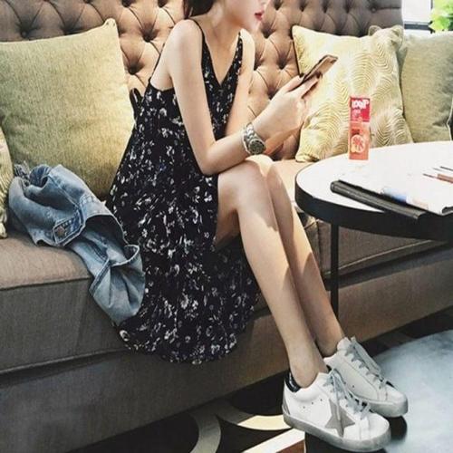 S30870 플라워 해변 휴가 프릴 민소매 끈 나시 원피스 WFL8DMC