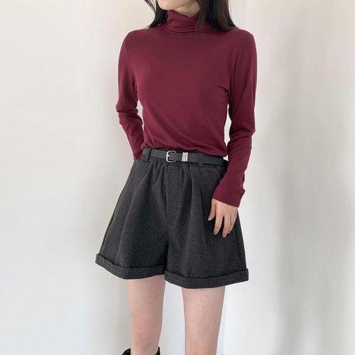 [옷자락]여자 투컬러 하이웨이스트 고무줄 헤링본 FW 미니멀리즘 반바지
