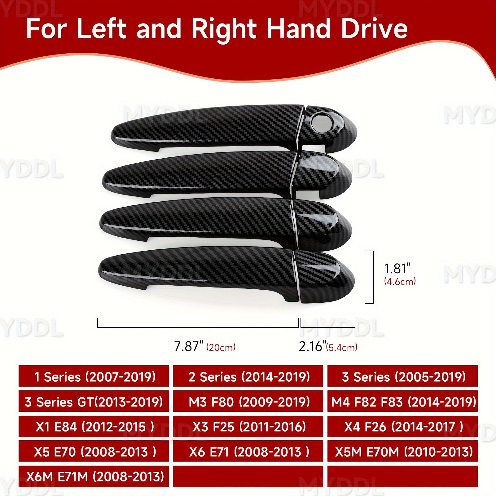 TEMU 4개 어드벤처 블랙 텍스처 ABS 차량 도어 핸들 스티커 장식, BMW E87, F20, F22, F23, E90, E92, E93, F30, F34, F35, F32, F33, F36, F21, F80, F82, F83, E84, E70, E71, F25, F26, X1, X3, X4, X5, X6, M3 및 M4 모델용