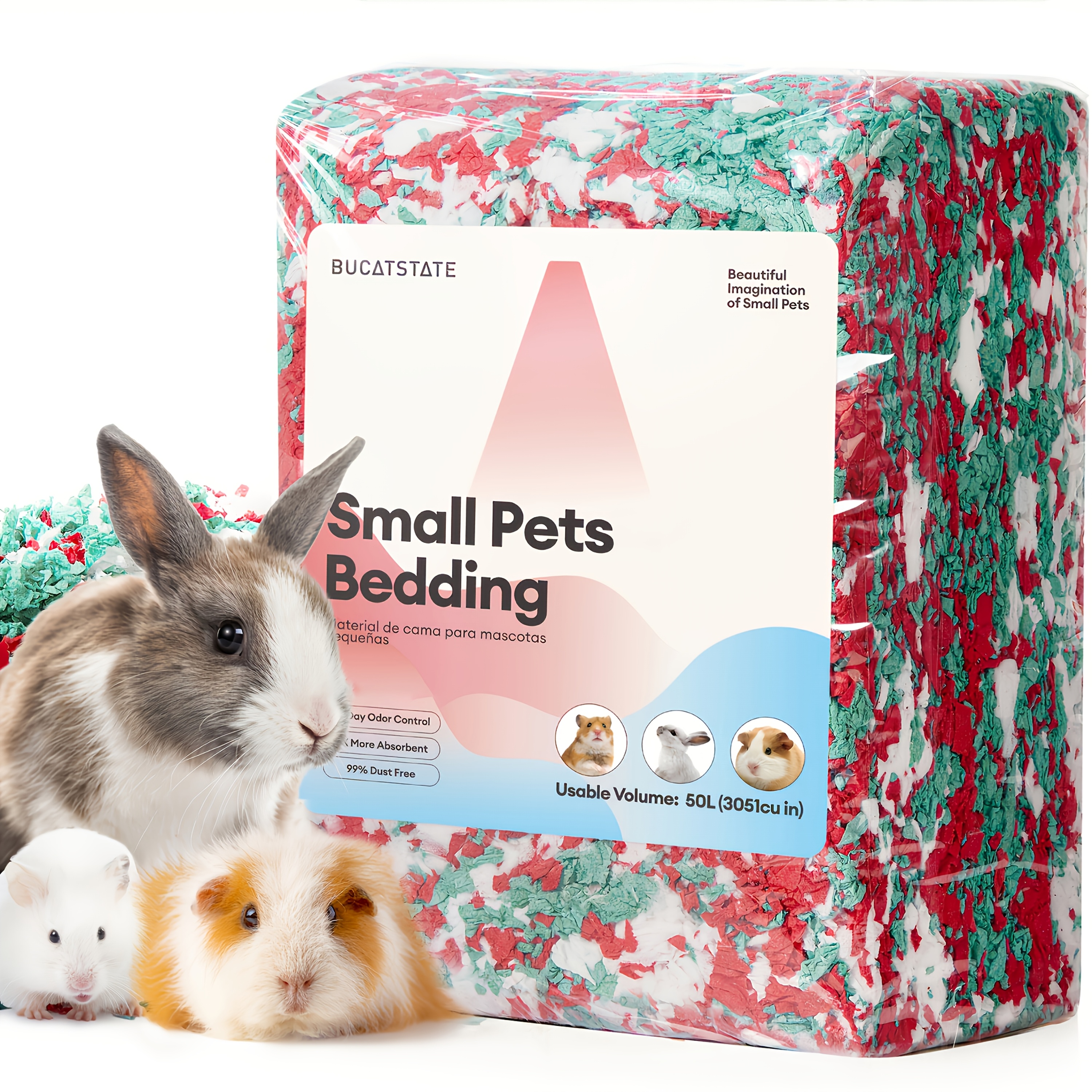 TEMU BUCATSTATE 소형 애완동물 침구 - 레드/그린/화이트, 햄스터용 겨울 서식지 솜, 초부드럽고 보온성, 높은 흡수력, 케이지 둥지 및 굴 파기에 완벽 (색상: 크리스마스 트라이컬러, 사이즈: 20L/50L)