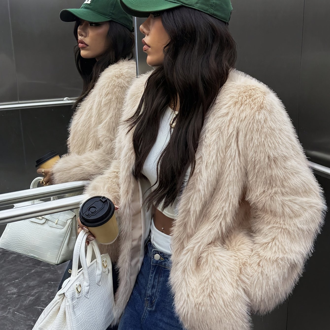 TEMU 여성 솔리드 컬러 롱 슬리브 페이크 재킷, 따뜻하고 두꺼운 겨울용, 스타일리시한 미디엄 레인지 디자인과 루즈핏으로 매일 파티 및 눈이 내리는 겨울철의 패셔너블한 외출에 적합