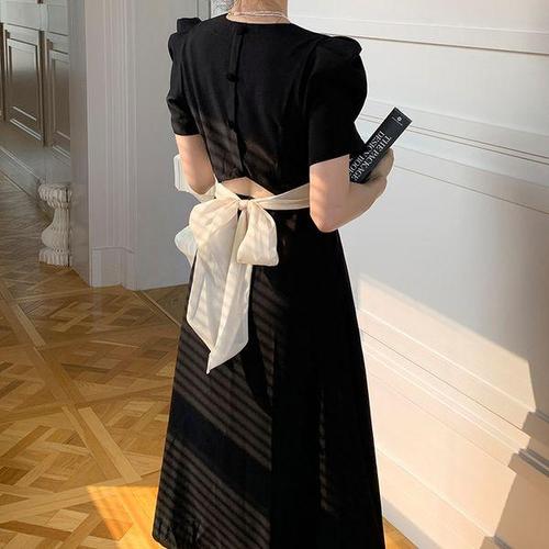 [무드수]햅번 원피스 스퀘어넥 백리스 리본 하객룩