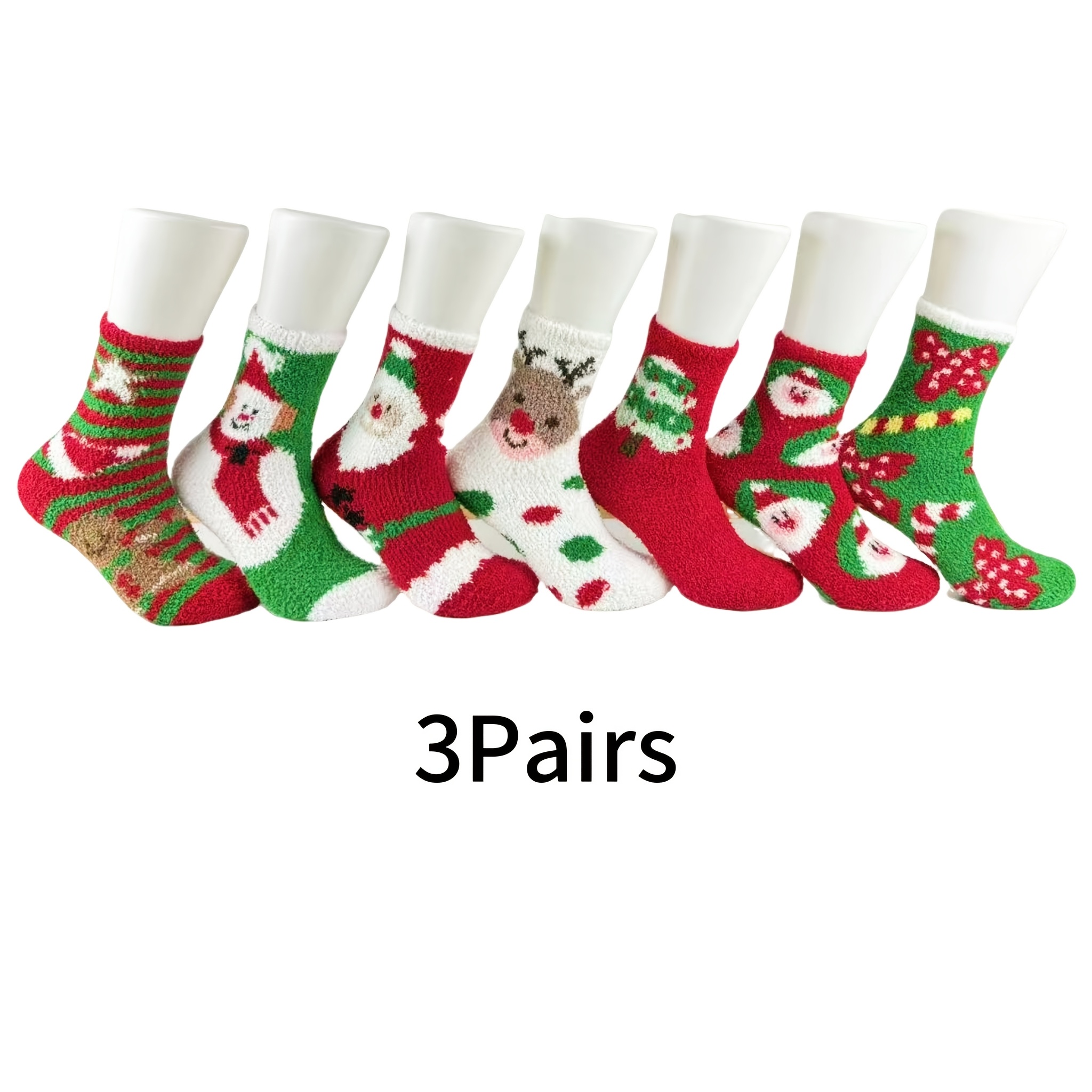 TEMU 코랄 양말 3켤레, 두꺼운 겨울용 바닥 양말, 중목 레드 크리스마스 새해 양말, 청소년용