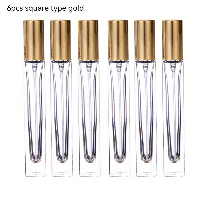 TEMU 6개입 10ml 두꺼운 투명 유리 향수 병 고품질 사각 및 원형 리필 가능 스프레이 아토마이저 병 (블랙, 골드, 실버 뚜껑)
