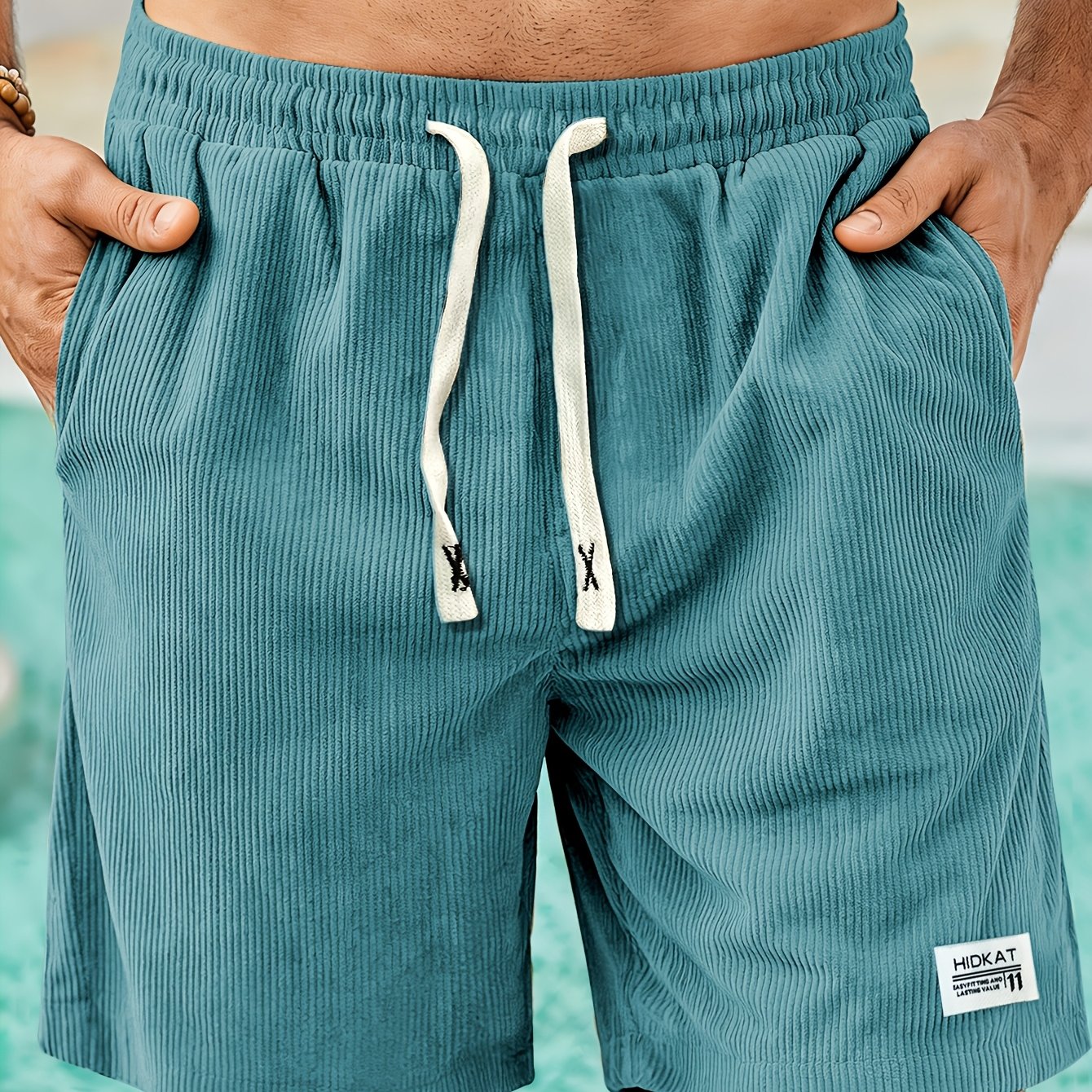 TEMU 1개 남성용 여름 코듀로이 반바지, 드로스트링 탄성 허리, 데일리 아웃도어 캐주얼 비치웨어