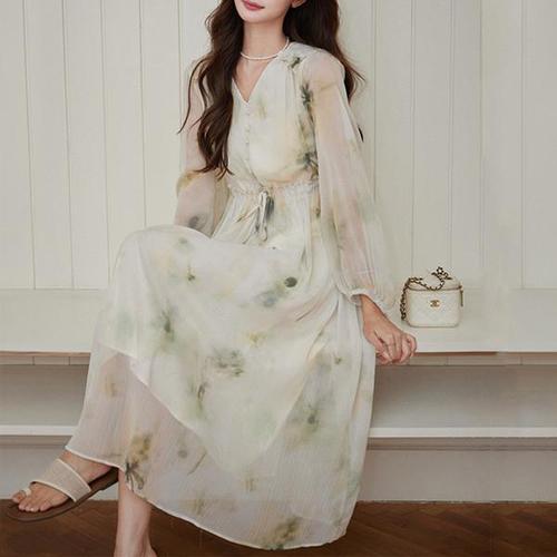 [패션이슈]프리지아허리스트링브이넥롱원피스 LU00176