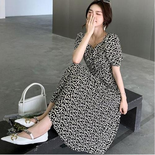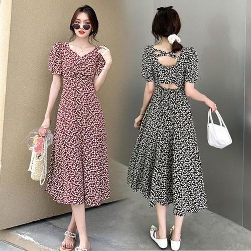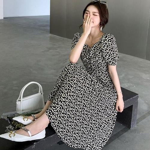 여성 세련된 휴양지 스타일 허리트임 드레스