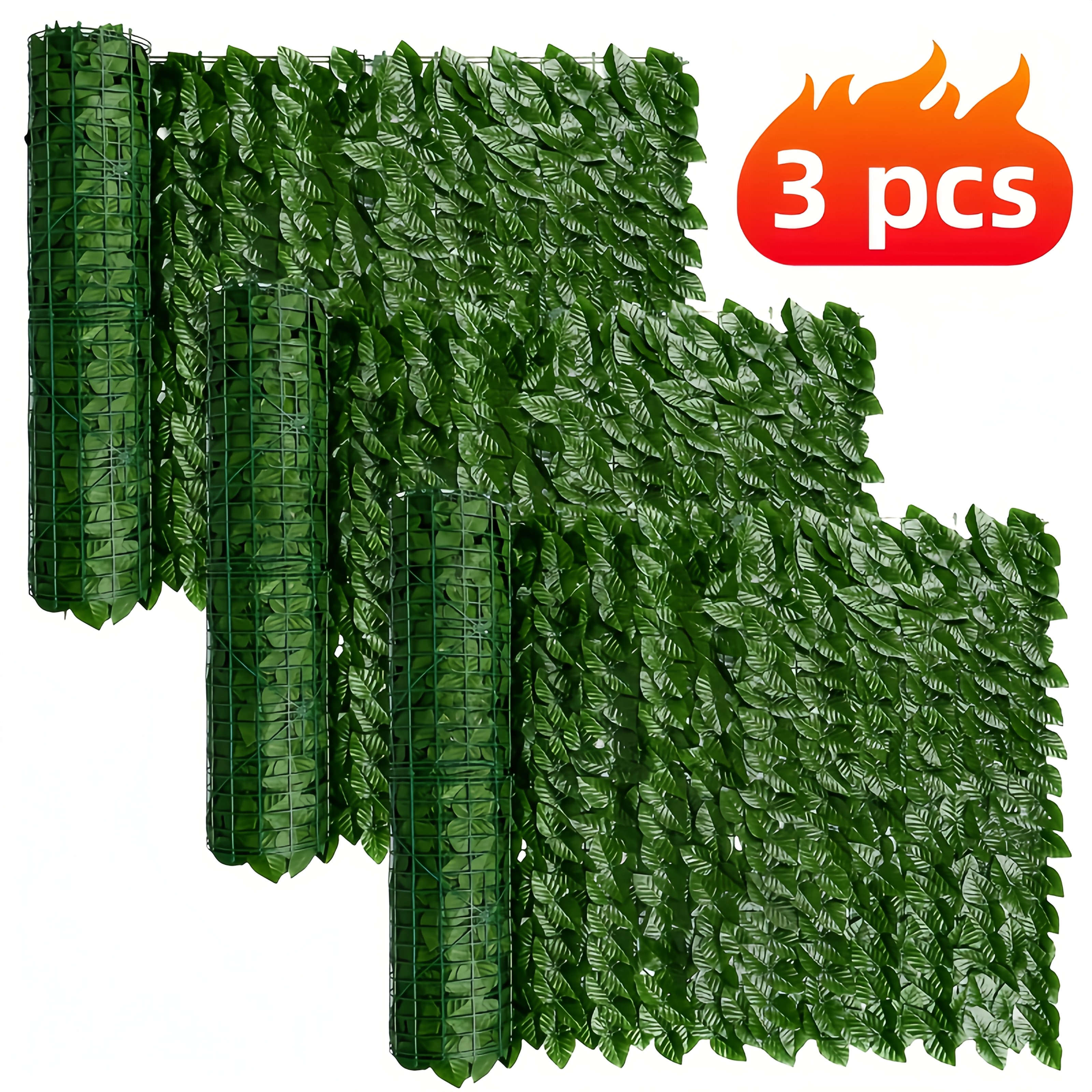 TEMU 3개 인공 덩굴 사생활 보호 울타리 패널 - 총 길이 52Cm X 152Cm, 야드, 발코니, 정원, 뒤뜰에 적합한 내구성 플라스틱 그린 스크린 - 야외 장식, 가정 장식용 인공 식물, 정원용 인공 식물