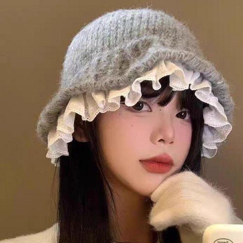 니트 레이스 비니 프릴 대두 버킷햇 보넷 모자 산책 벙거지 겨울 WFKZZ2M
