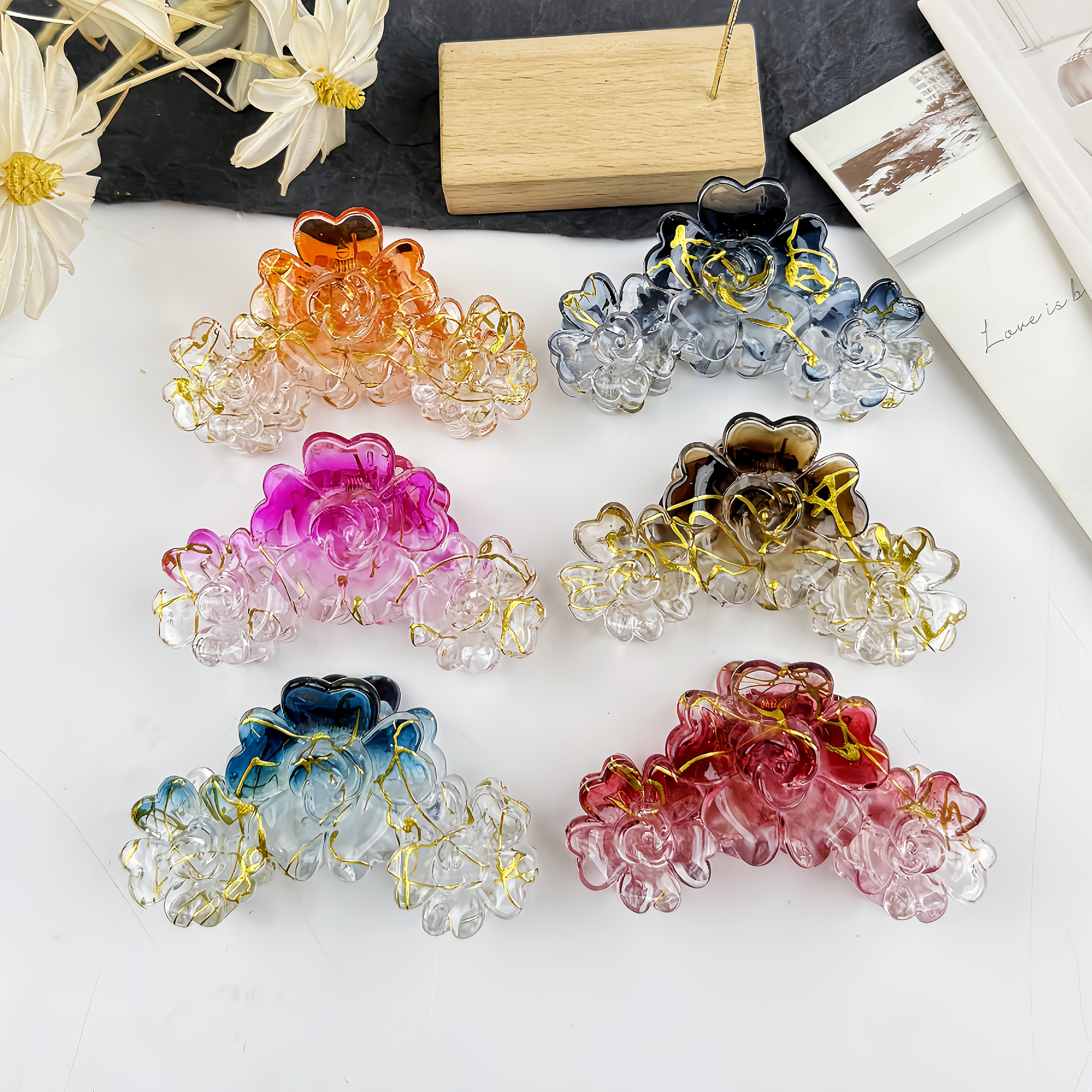 TEMU 7개 스타일 여성 헤어 클립 세트, 그라데이션 꽃 색상 클로 헤어 클립, 봄/여름 출퇴근 야외 플라스틱 헤어 액세서리.