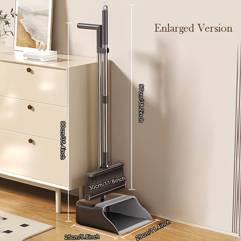 TEMU 더 큰 크기와 튼튼한 가정용 빗자루와, 애완동물 털 제거를 위한 빗이 포함된 독특한 디자인의 먼지 받침이 특징인, 거실 및 침실에서 사용하기에 적합한 빗자루 세트