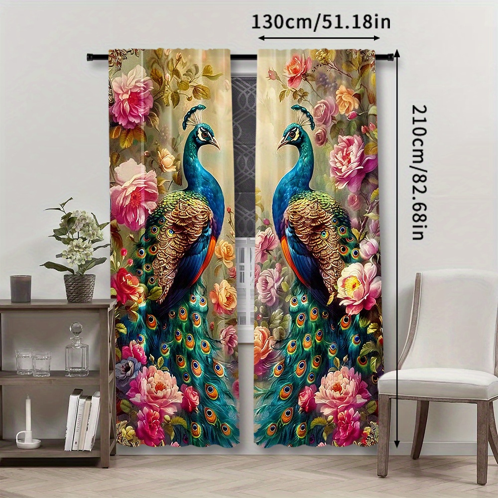 TEMU 레트로 황새 플로럴 드레이프 2개 세트, 로드 포켓 설치용 디자인, 디지털 프린트 원단, 폴리에스터 소재, 거실, 세탁실, 주방, 침실, 사무실, 식사 공간, 홈 데코레이션에 적합, (로드 미포함)