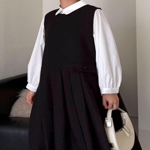 애비뉴투지 엄마옷 헤링본 플리츠 봄 가을 겨울 안감 롱 조끼 원피스 K01624