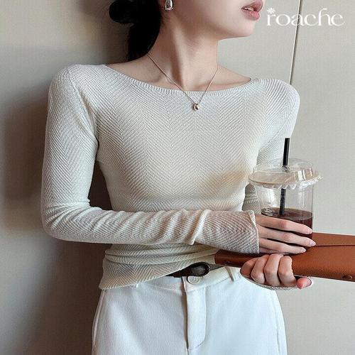 EAMT 가을 캐주얼 여성티셔츠 기본 라운드 오프숄더 맨투맨 싱글 YJ3