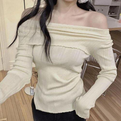 [오너클랜]인기상품 여성 오프숄더 골지 시크라인 긴팔 티셔츠 [WFK30B9_260405]
