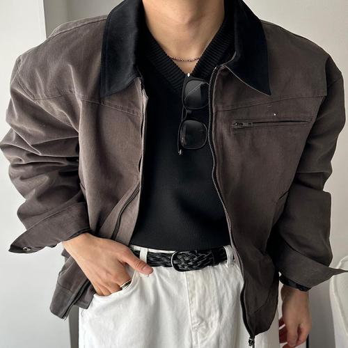 [아레스]워크 헤링턴 크롭 배색 자켓 (3color)