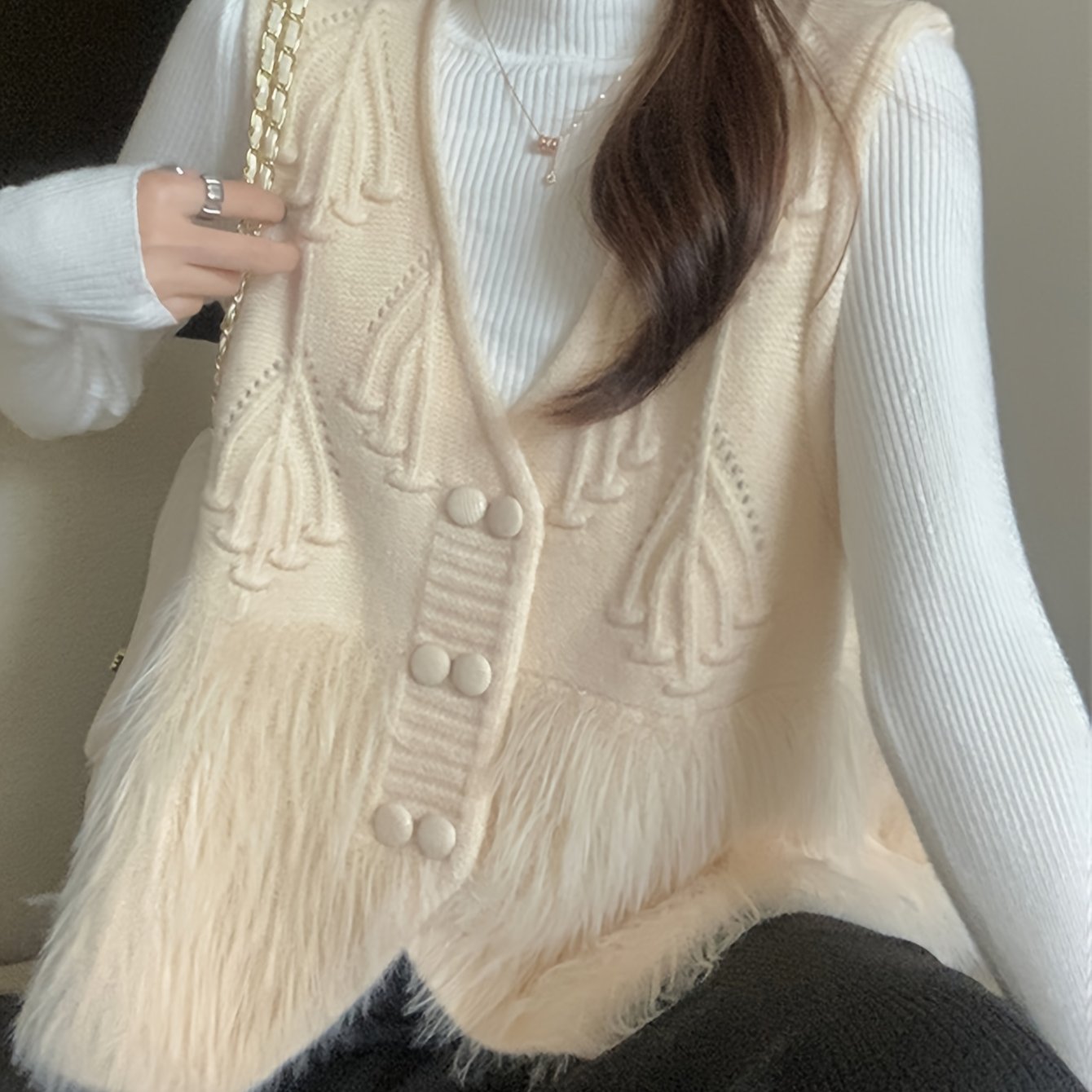 TEMU 일본 & 한국 특별 컬러 플러시 대비 V넥 스웨터 가디건